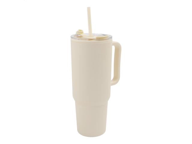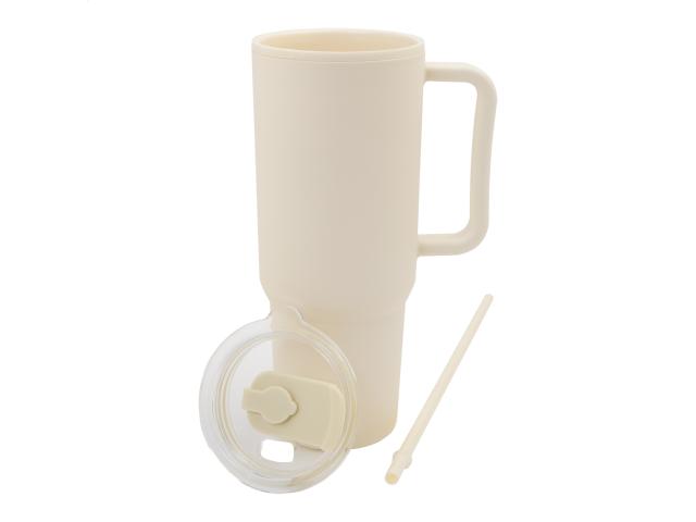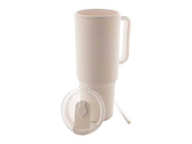 Double-wall, PP plastic insulated thermo cup with drinking lid and straw. 1100 ml.