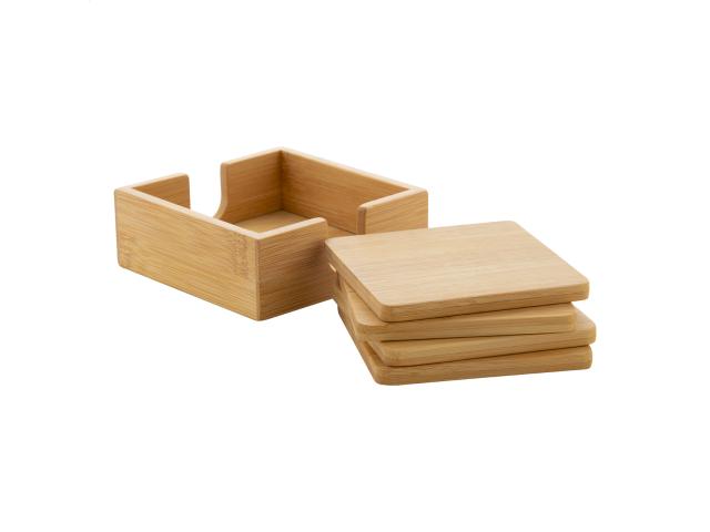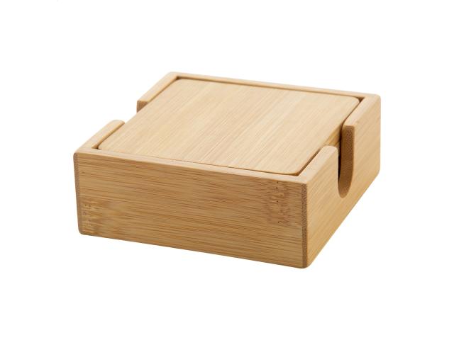 4 pc bamboo coaster set with desk holder.