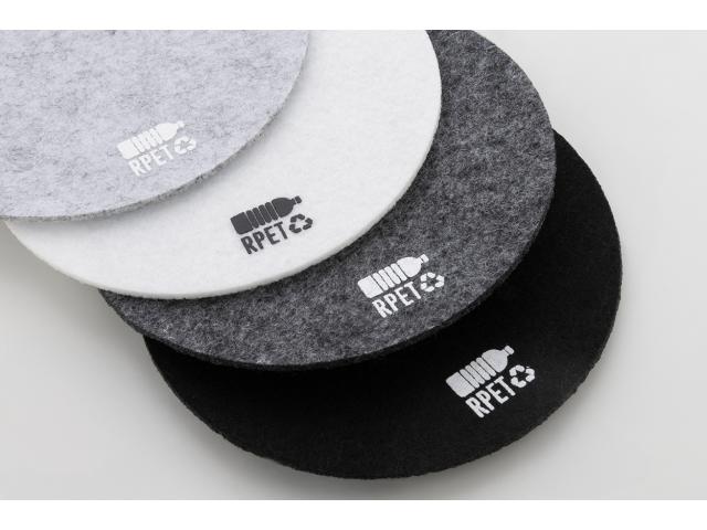 Round RPET felt coaster. With distinctive RPET sign.
