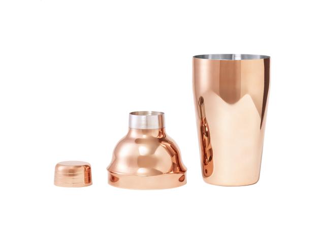 Copper plated stainless steel cocktail shaker, 550 ml.