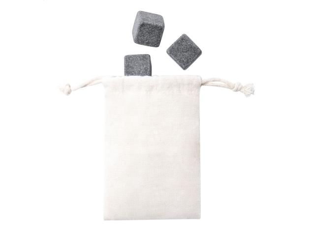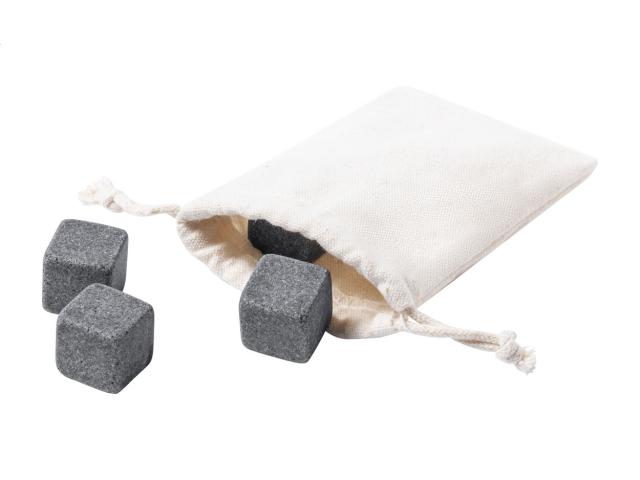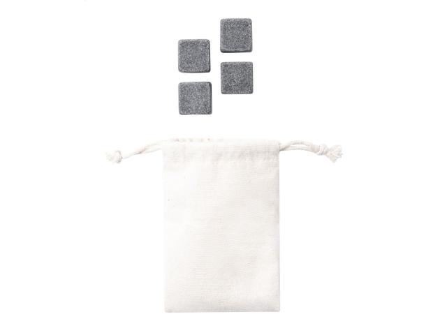 4 pc reusable stone ice cube set in cotton pouch.