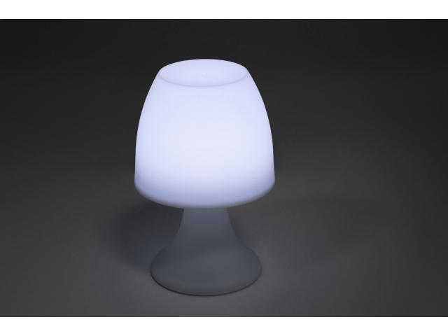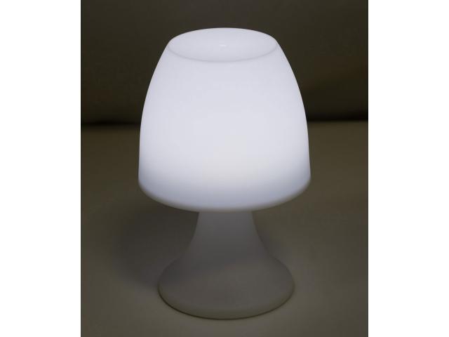 Plastic table lamp with white LED light. Operates with 3 AAA batteries, without batteries.