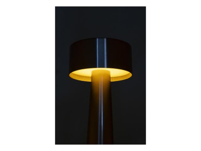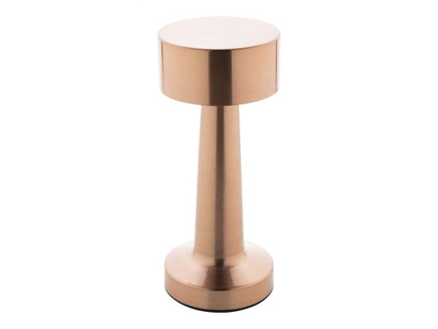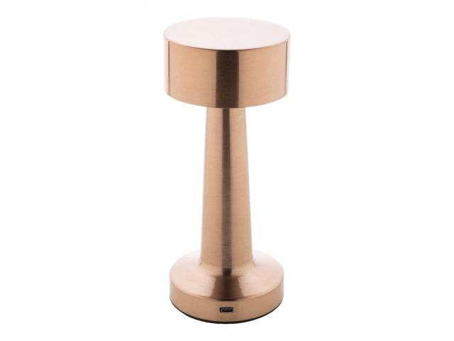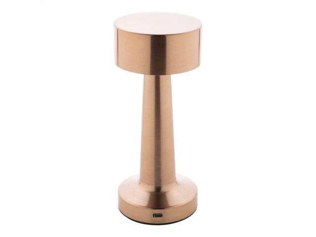 Golden finish metal table lamp with 24 LEDs, adjustable brightness and 800 mAh USB rechargeable battery. With warm, natural and cool light modes. Including USB charger cable.