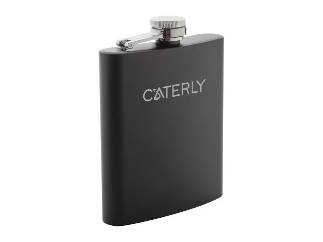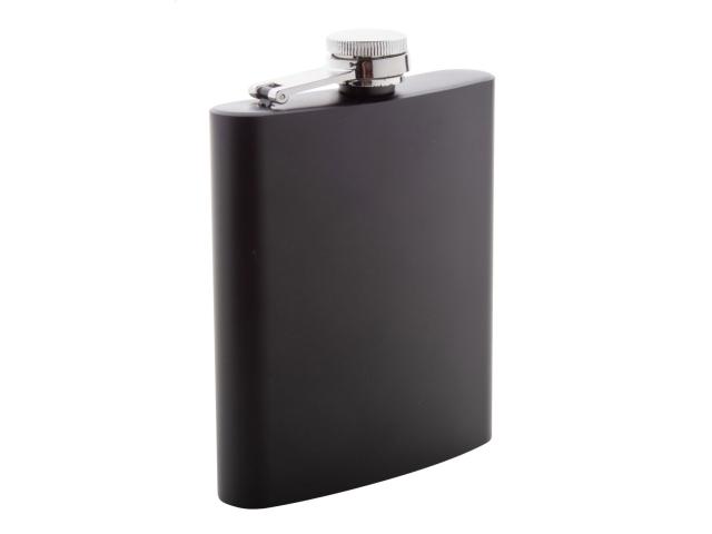 Stainless steel hip flask with black painted surface, 200 ml.