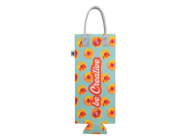 Custom made, RPET felt wine gift bag with full colour printed graphics. With distinctive RPET label. Price includes sublimation printing. MOQ: 25 pcs.
