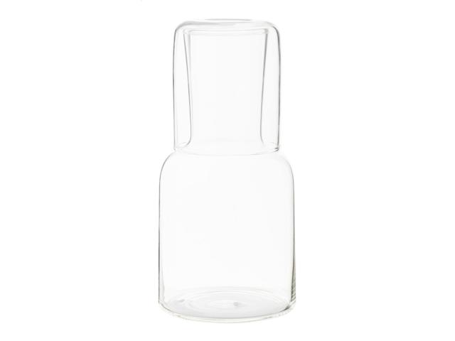 Borosilicate glass water carafe (800 ml) and drinking glass (300 ml) set. In kraft paper box. Suitable for both cold and hot drinks, it can be also used as a decanter bottle.