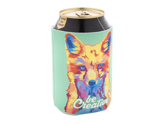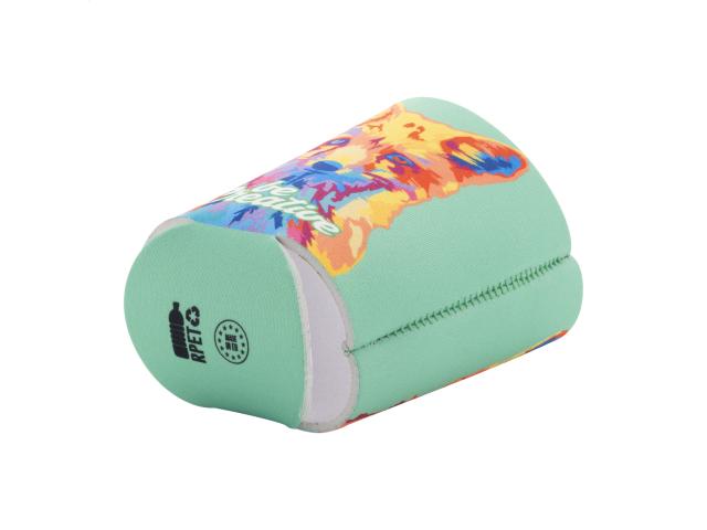 Custom made, RPET neoprene cooler cover for 0,33 L standard-type aluminium can. With all over sublimation printed graphics. MOQ: 50 pcs.