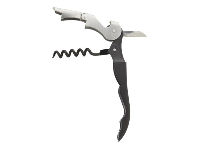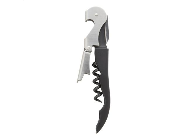 Metal corkscrew with bottle opener.