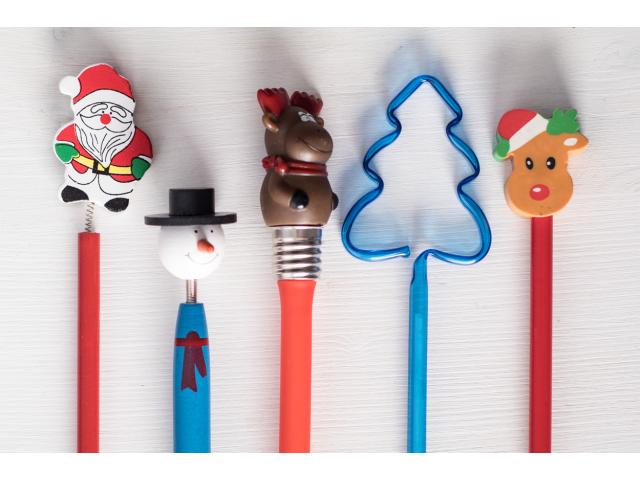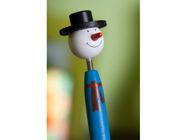 Wooden, cartoon ballpoint pen with Christmas figure on the top. With blue refill.