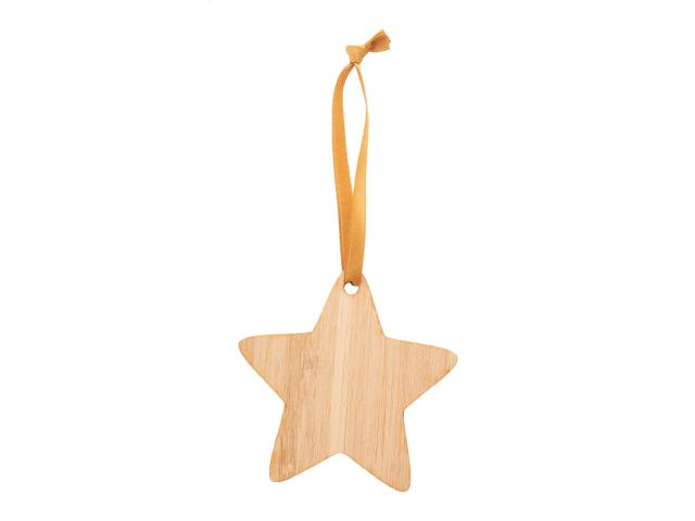 Christmas tree ornament in bamboo plywood with golden ribbon. Delivered with detached ribbon.