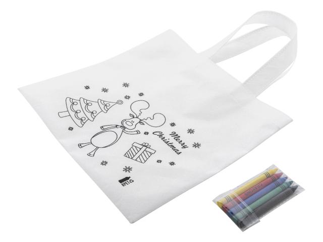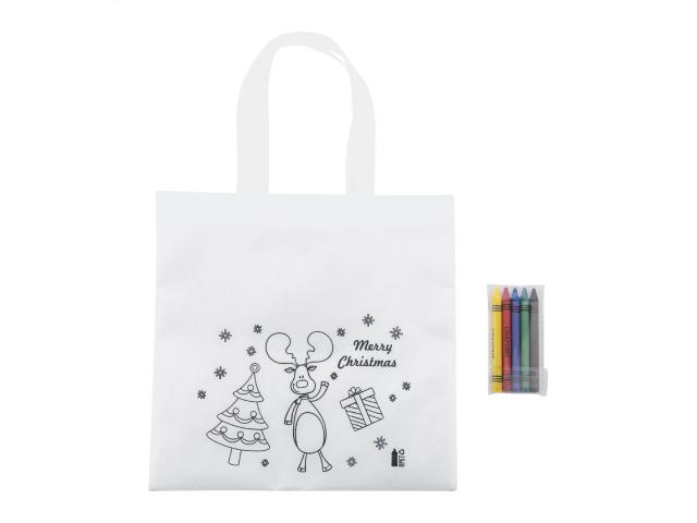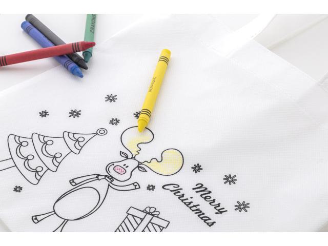 Colouring Christmas gift bag in RPET non-woven with 5 crayons.