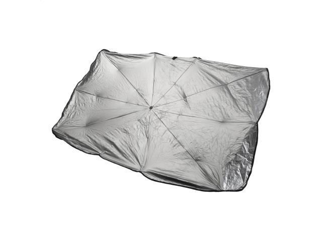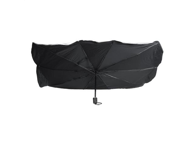 Foldable, car sunshade manual umbrella for windshield with metal frame. In polyester pouch.
