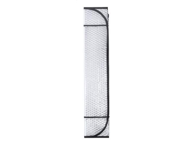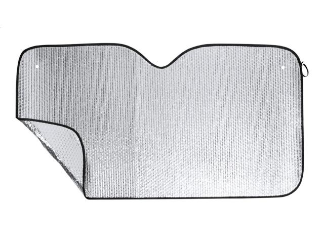 Aluminium car sunshade for windshields, with elastic bands for folding. MOQ: multiples of 100 pcs.