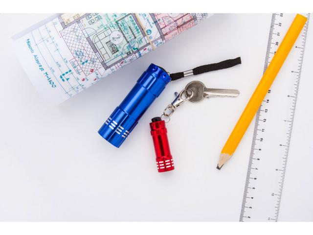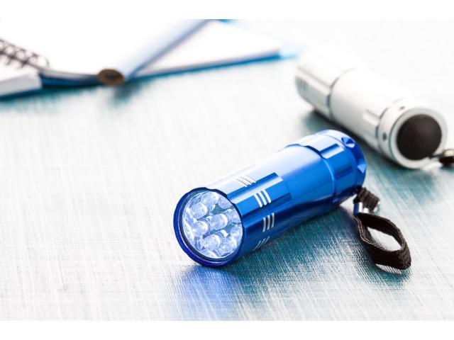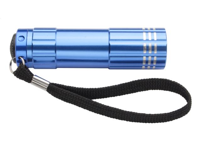9 LED aluminium flashlight with carry strap. With 3 AAA batteries.