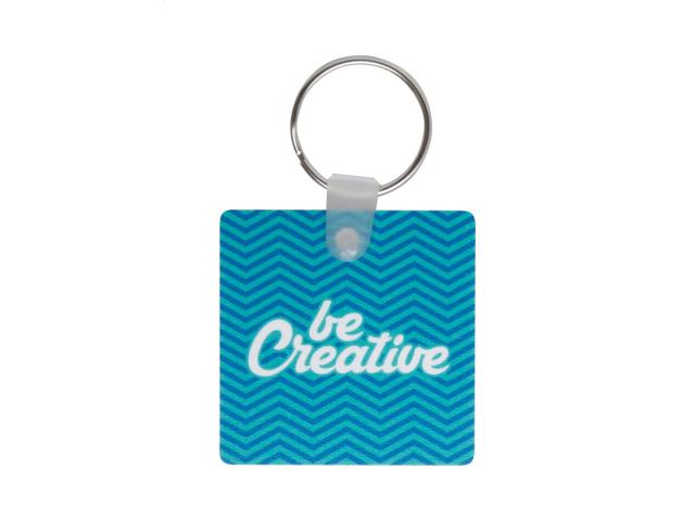 Square shaped, PVC foam keyring with full colour printing. Price includes UV LED printing. MOQ: 200 pcs.