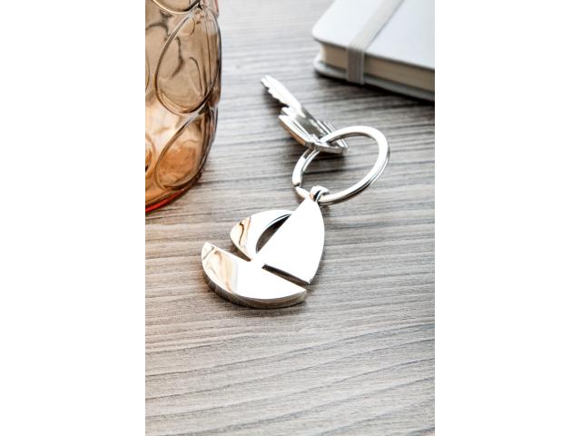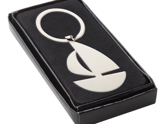 Ship shaped metal keyring, in black gift box.