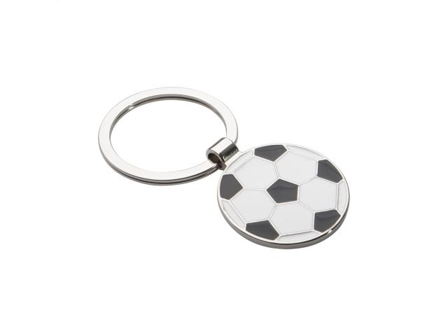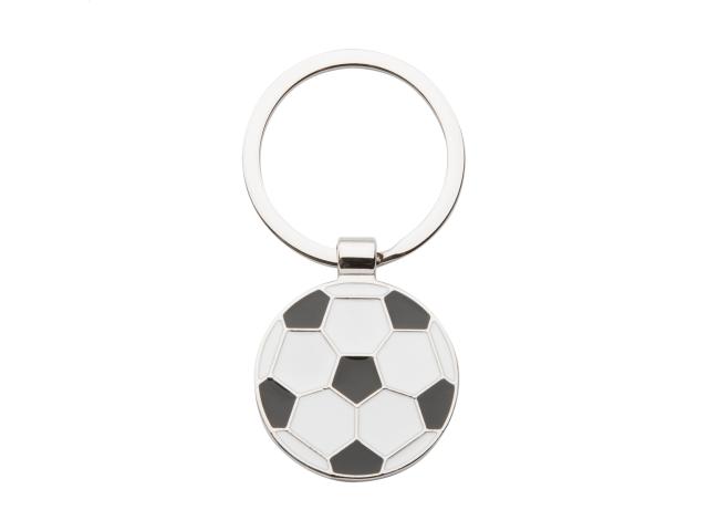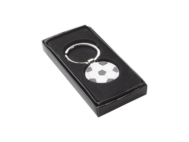 Football shaped metal keyring. In black gift box.