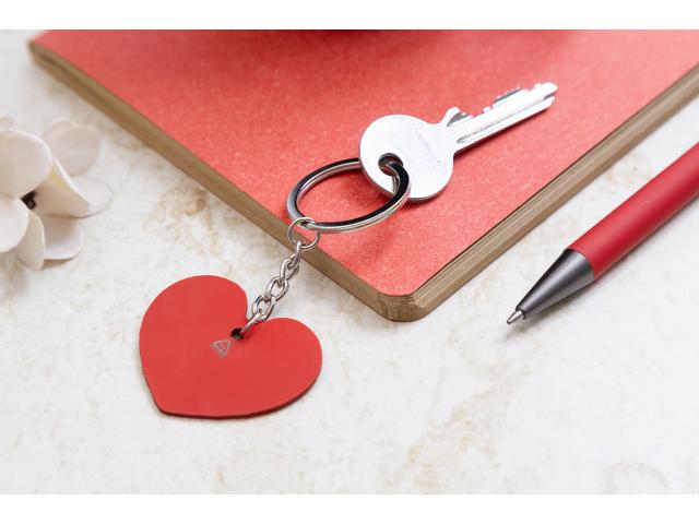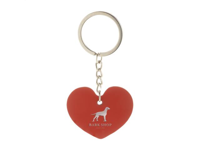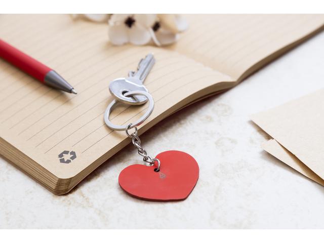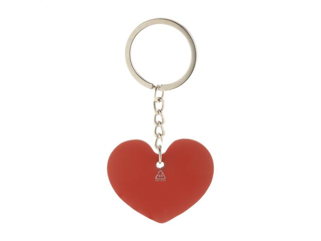 Hearth shaped, recycled stainless steel keyring with rubberized finish. With special coating for mirror laser engraving.