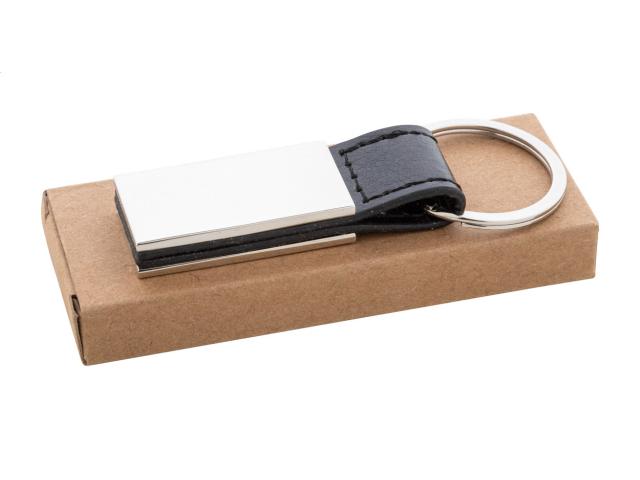Metal keyring with PU leather strap. In kraft paper box.