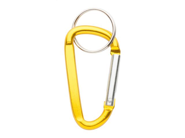 Aluminium carabiner with metal keyring.
