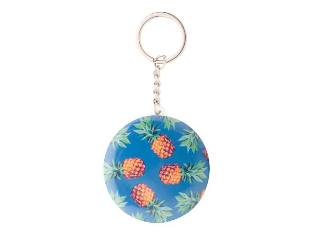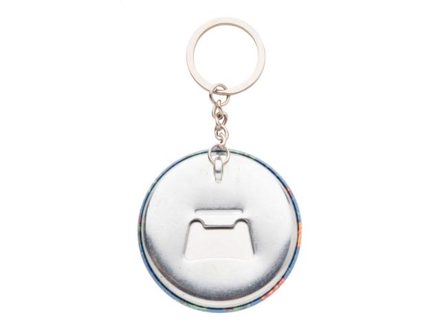 Large pin button bottle opener keyring with custom full colour paper insert. Price includes digital printing. MOQ: 100 pcs.