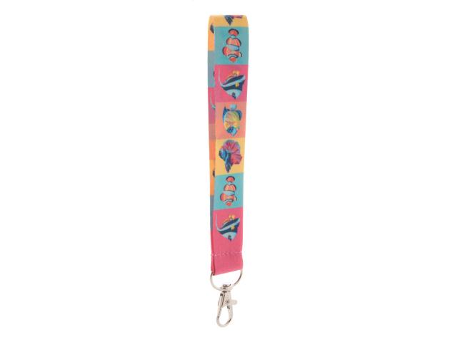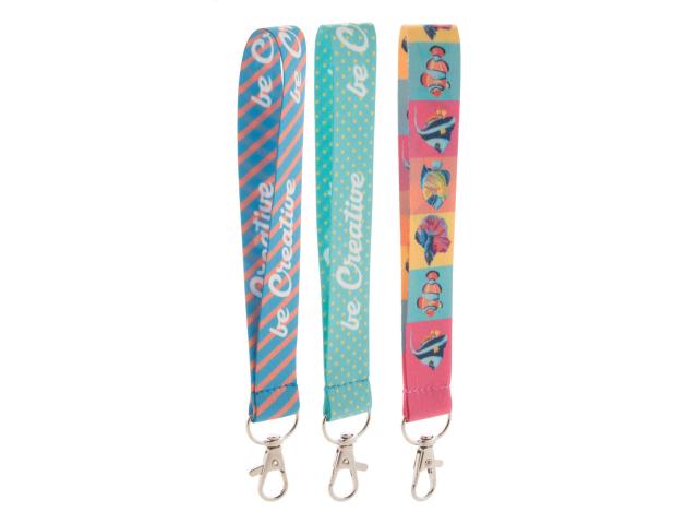 Custom made, polyester keyring with metal carabiner. With sublimation printed graphics on both sides. MOQ: 100 pcs.