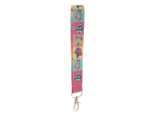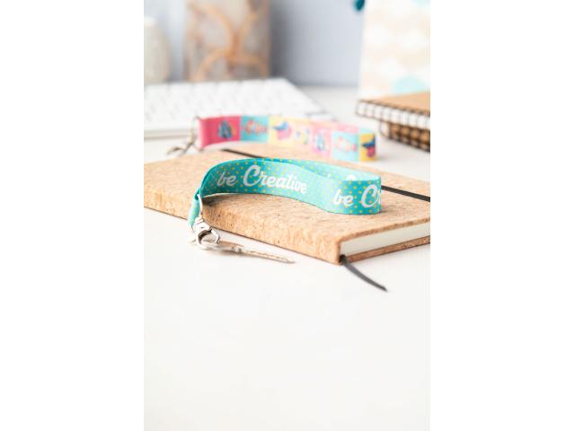 Custom made, RPET polyester keyring with metal carabiner. With inside RPET label and sublimation printed graphics on both sides. MOQ: 100 pcs.