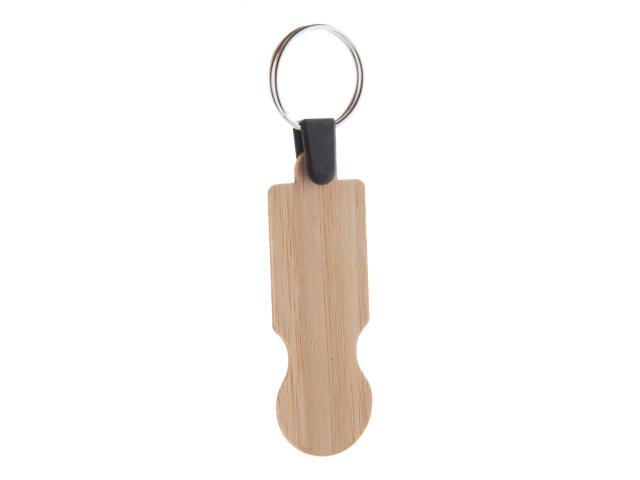 Bamboo plywood keyring with shopping trolley coin.