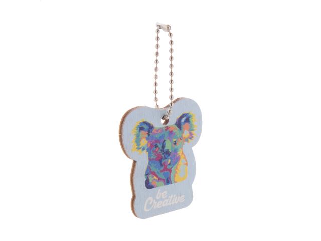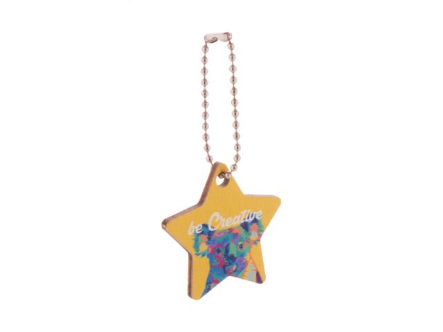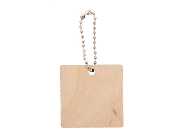 Custom made, birch plywood keyring with full-colour printing and metal chain. Produced in custom shape – maximum size: 45×45 mm. Price includes UV LED printing on one side. MOQ: 200 pcs.