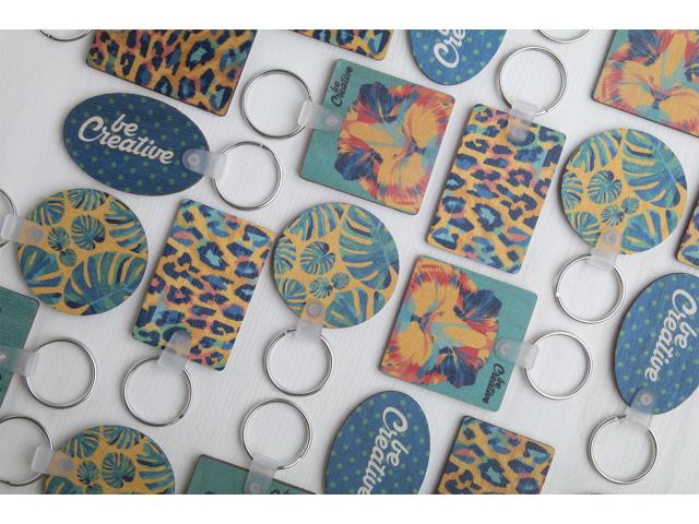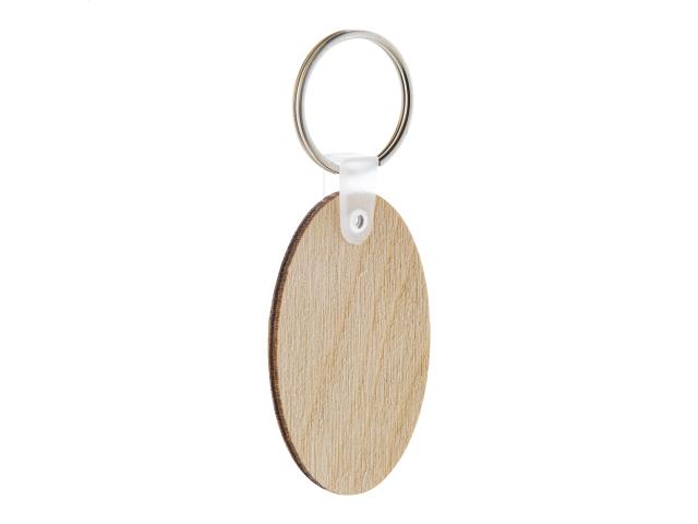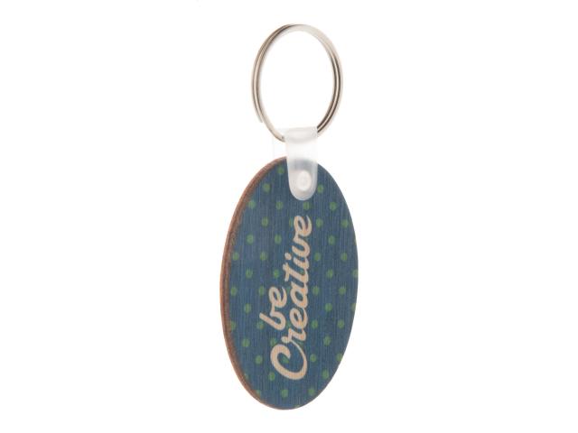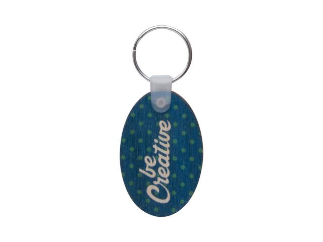 Oval shaped, laminated birch wood keyring with full colour printing. Price includes UV LED printing on one side. MOQ: 200 pcs.
