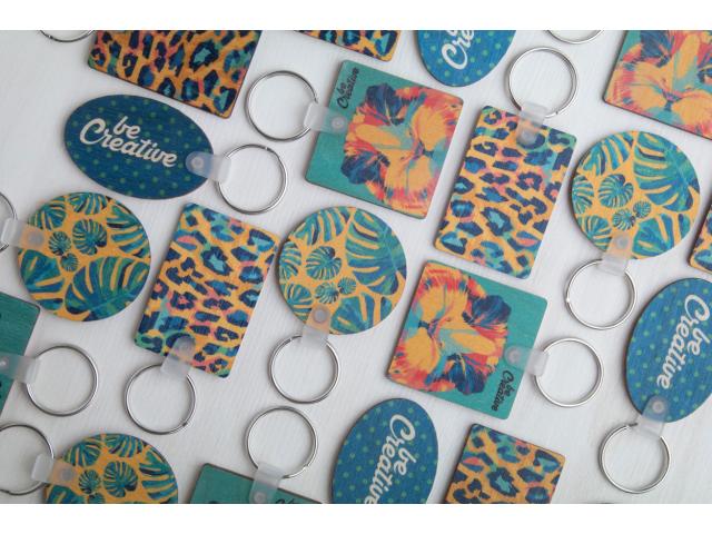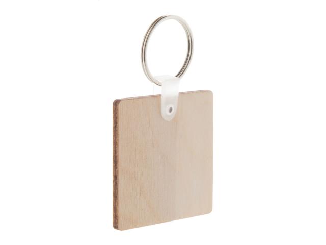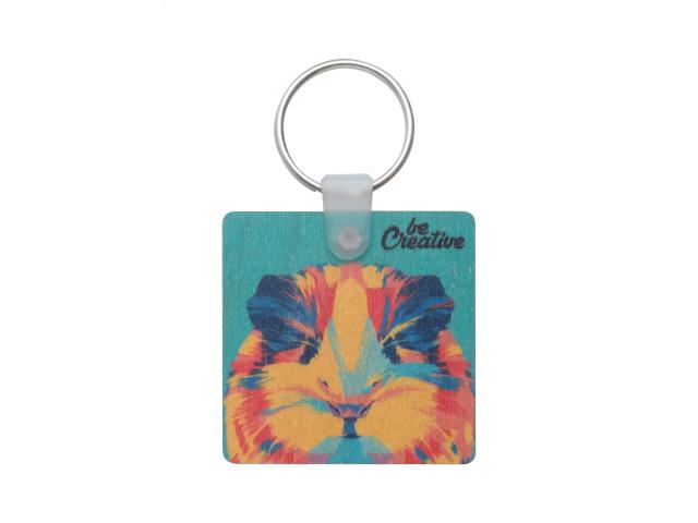 Square shaped, laminated birch wood keyring with full colour printing. Price includes UV LED printing on one side. MOQ: 200 pcs.