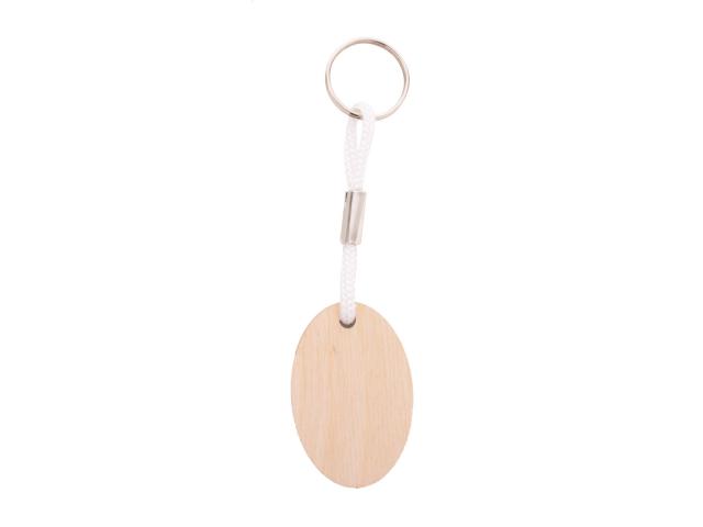 Oval shaped, birch plywood keyring with coloured polyester string and full colour printing. Price includes UV LED printing on one side. MOQ: 200 pcs.