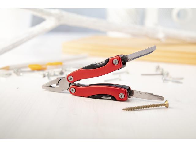 Stainless steel multi tool with 12 functions, in polyester case.
