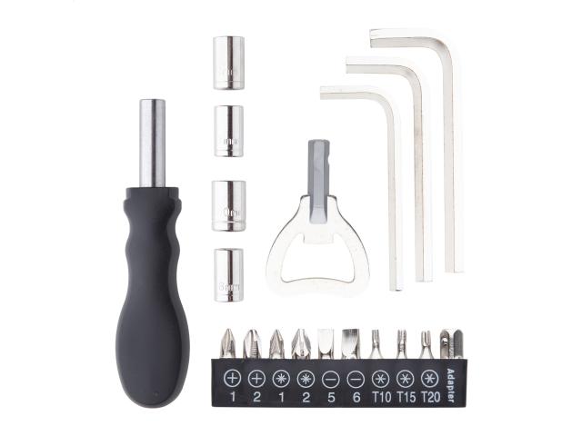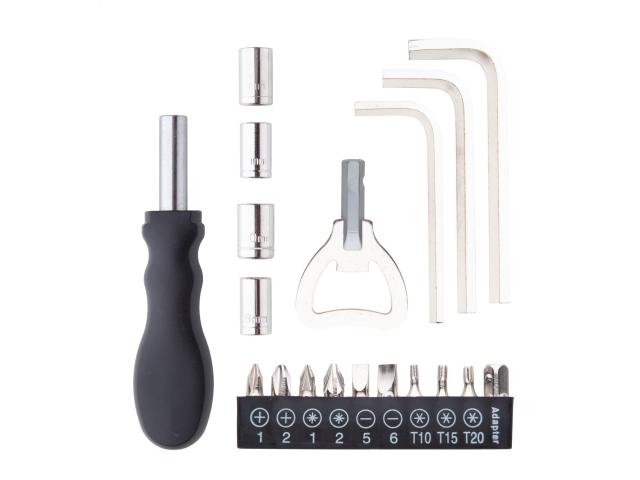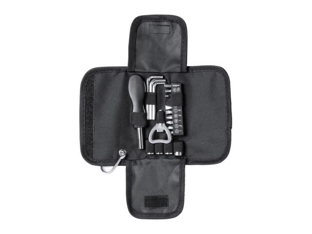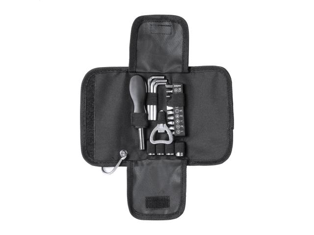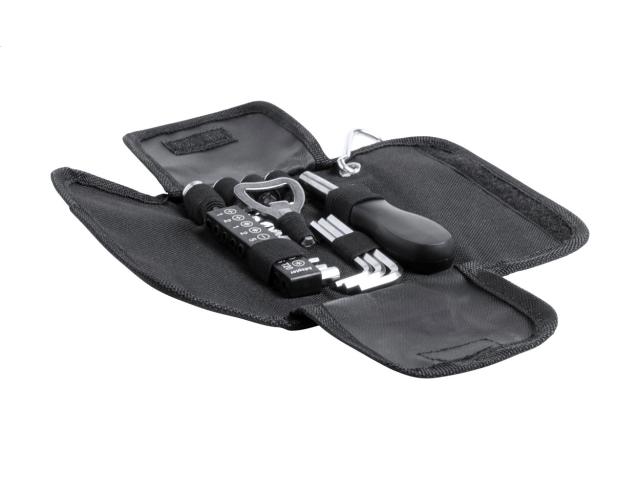 19 pc tool set in polyester case with carabiner.