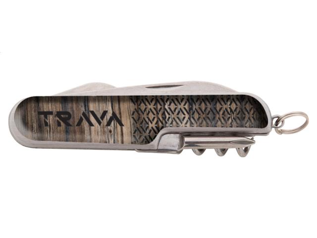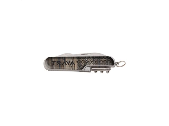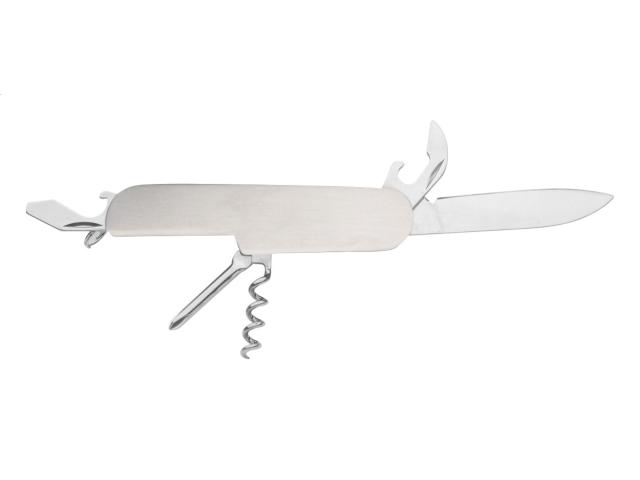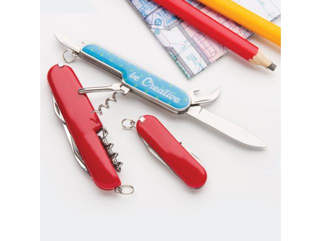 Stainless steel pocket knife with 5 functions and flat surface. Ideal for epoxy doming.