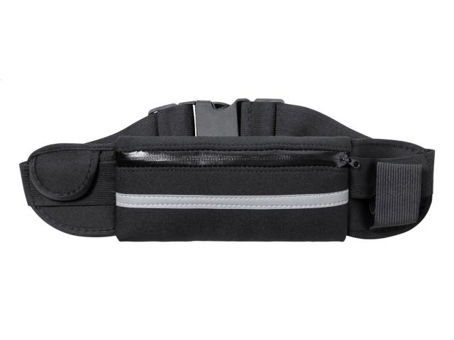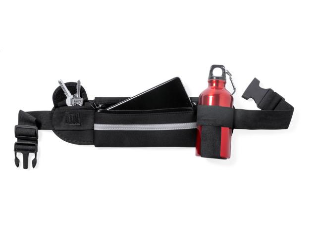 Waist bag in soft shell with 1 zipped compartment, 1 small pocket and elastic bottle holder, reflective band and adjustable strap. For promotional use only, the product does not qualify as a Personal Protective Equipment.