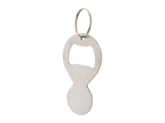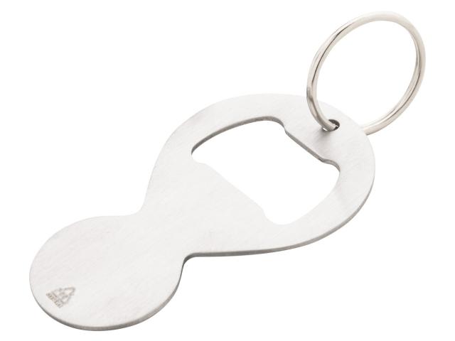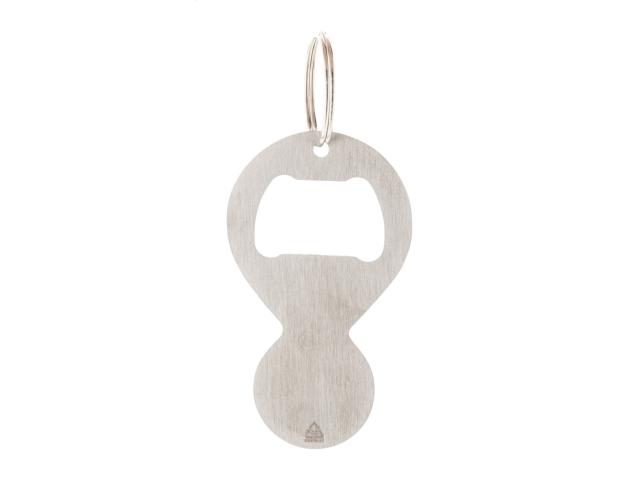 Recycled stainless steel keyring with bottle opener and shopping trolley coin.