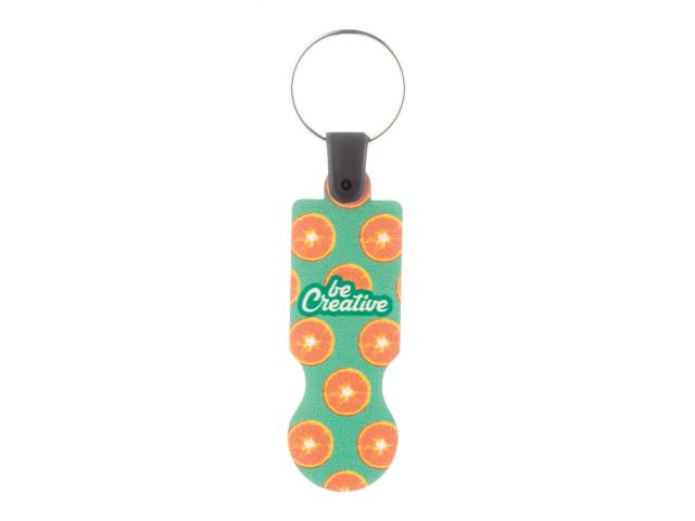 Plywood shopping trolley coin keyring with full colour graphics. Price includes UV LED printing on one side. MOQ: 200 pcs.