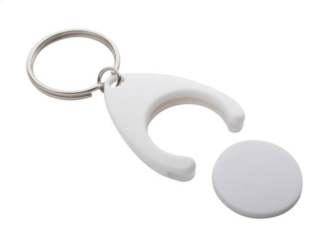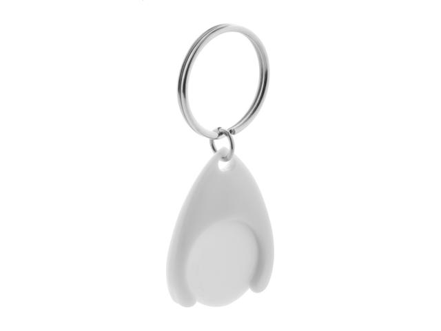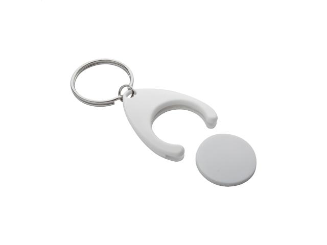 Plastic keyring with shopping trolley coin and metal ring. Coin size: ø24×2 mm.