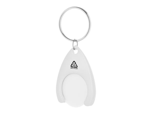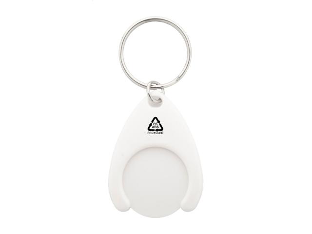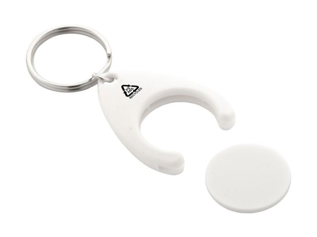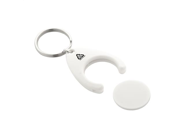 Recycled ABS and recycled PS plastic keyring with shopping trolley coin and metal ring. Coin size: ø24×2 mm.