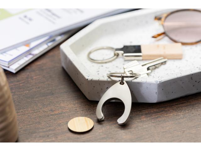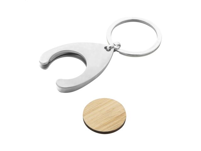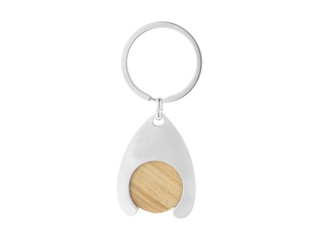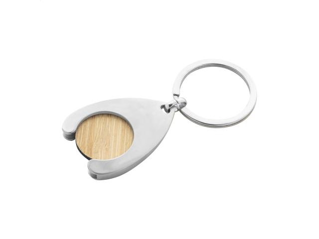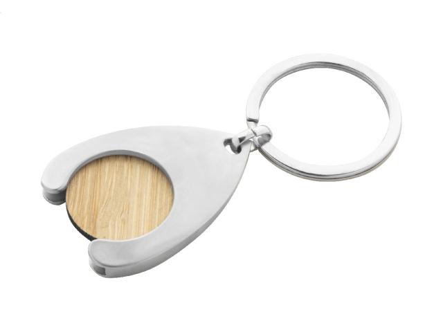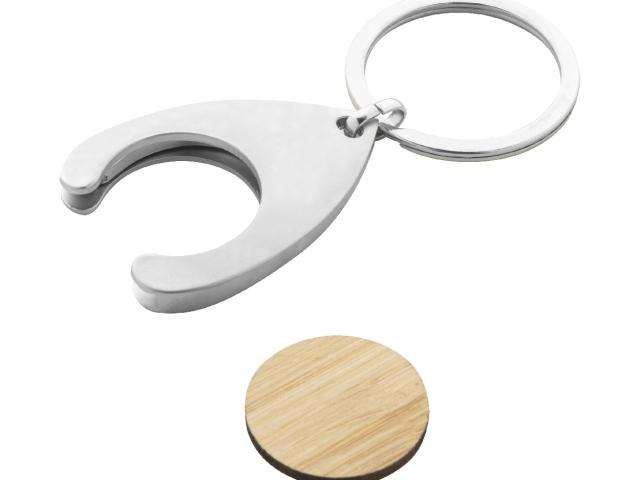 Metal keyring with bamboo shopping trolley coin and metal ring. Coin size: ø23×2 mm.