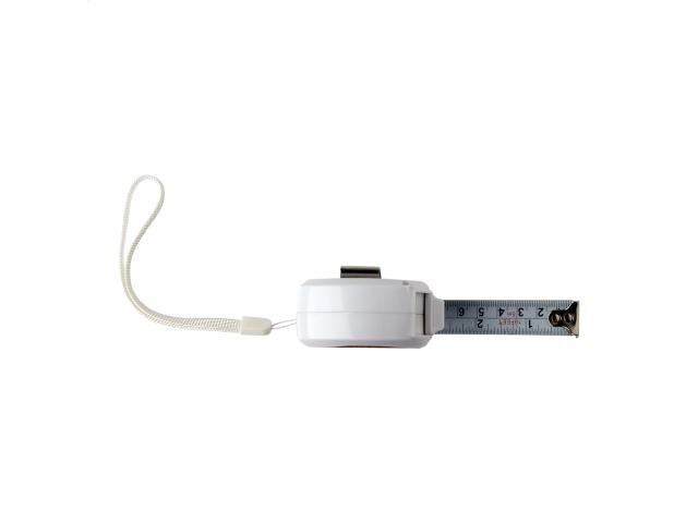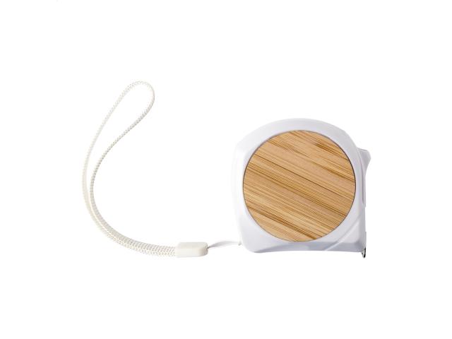 Plastic and bamboo tape measure with lock function, metal clip and hand strap, 5 m.