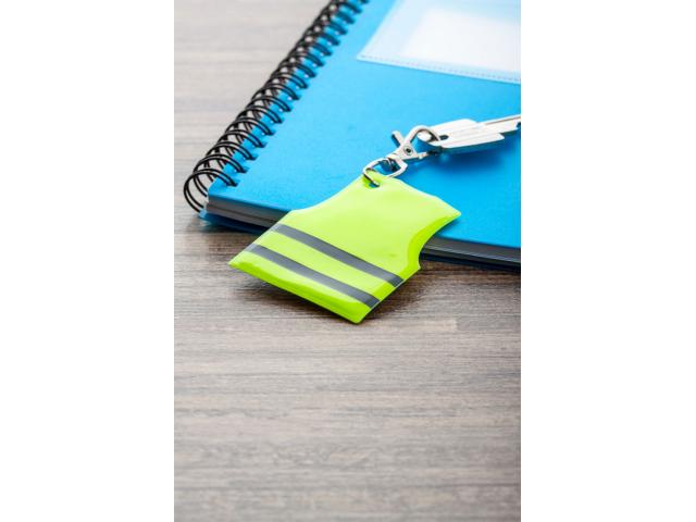 Mini reflective vest shaped keyring with carabiner. For promotional use only, the product does not qualify as a Personal Protective Equipment.