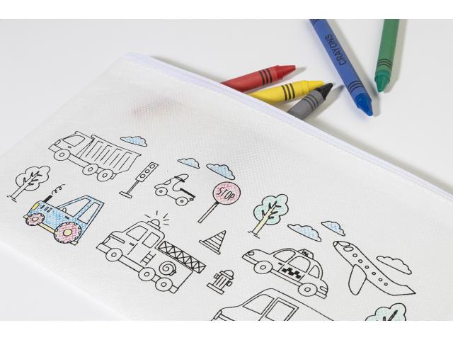 Zipped colouring pen case in RPET non-woven with 5 crayons.