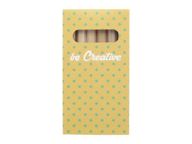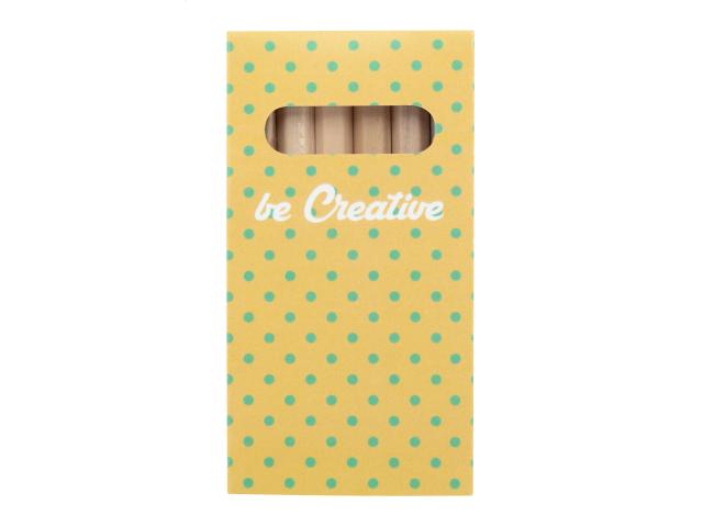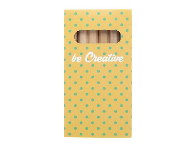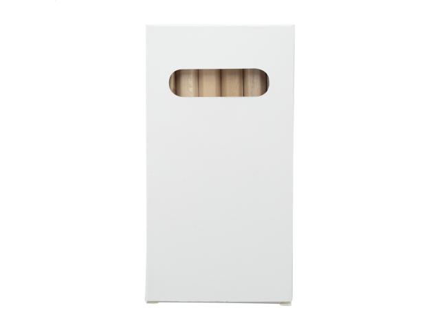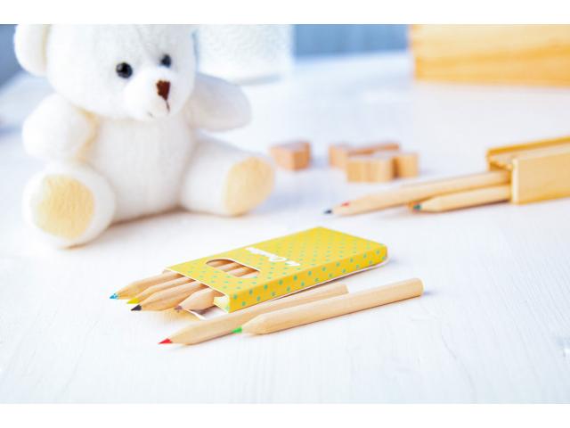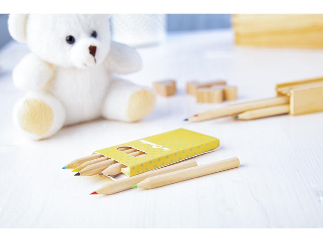 Wooden coloured pencils (6 pcs) in full colour printed paper box. Price includes digital printing. MOQ: 100 pcs.