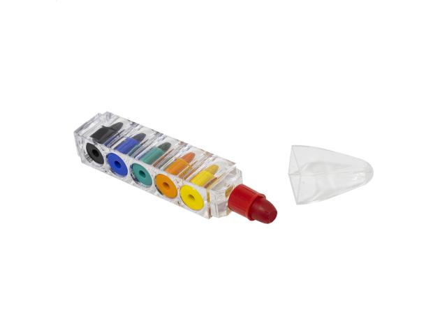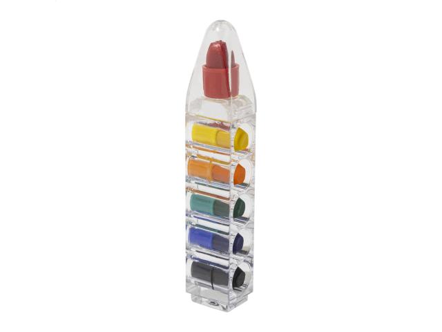 Coloured crayon tips (6 pcs) in transparent, pen shaped container.