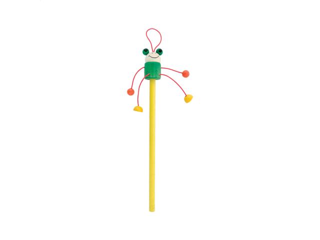 Wooden lead pencil with coloured barrel and funny figure, unsharpened.