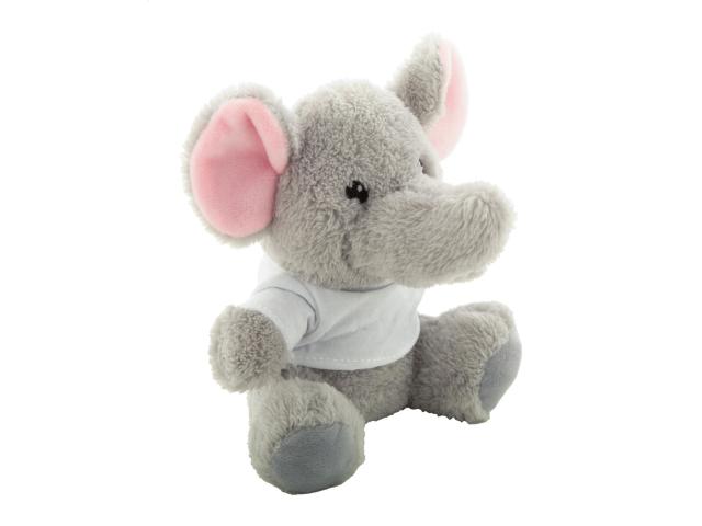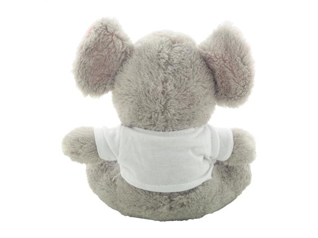 RPET plush elephant with printable T-shirt in RPET polyester. Orders without printing are delivered with detached T-shirt.