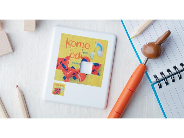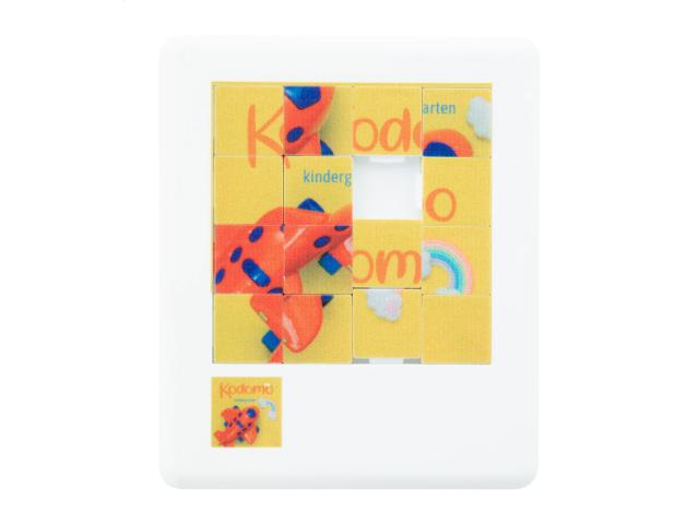Plastic mini sliding puzzle with printable surface.