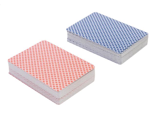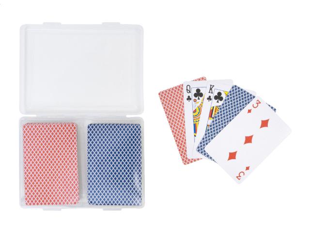 Set of paper classic playing cards in a recycled PP box. Includes two standard 54-card decks with red and blue backs.
